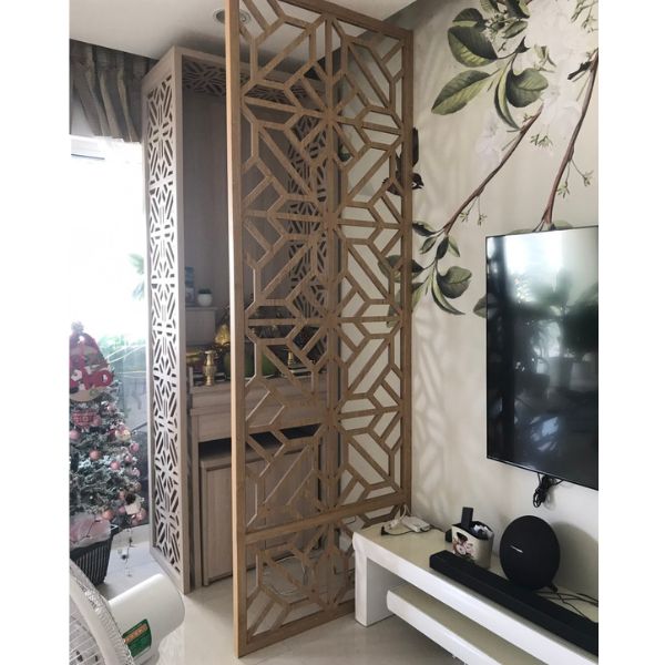 Nếu bạn yêu thích sự đơn giản và thanh lịch, vách ngăn gỗ mdf với họa tiết hoa văn đơn giản và tinh tế sẽ là lựa chọn hoàn hảo cho không gian phòng thờ của bạn.