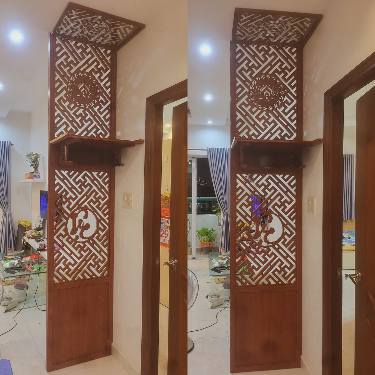• Thiết kế đa dạng: Vách ngăn bàn thờ treo có thể đi kèm với hoa văn trang trí tinh tế, mang đến vẻ đẹp truyền thống hoặc hiện đại tùy thuộc vào sở thích của gia chủ.