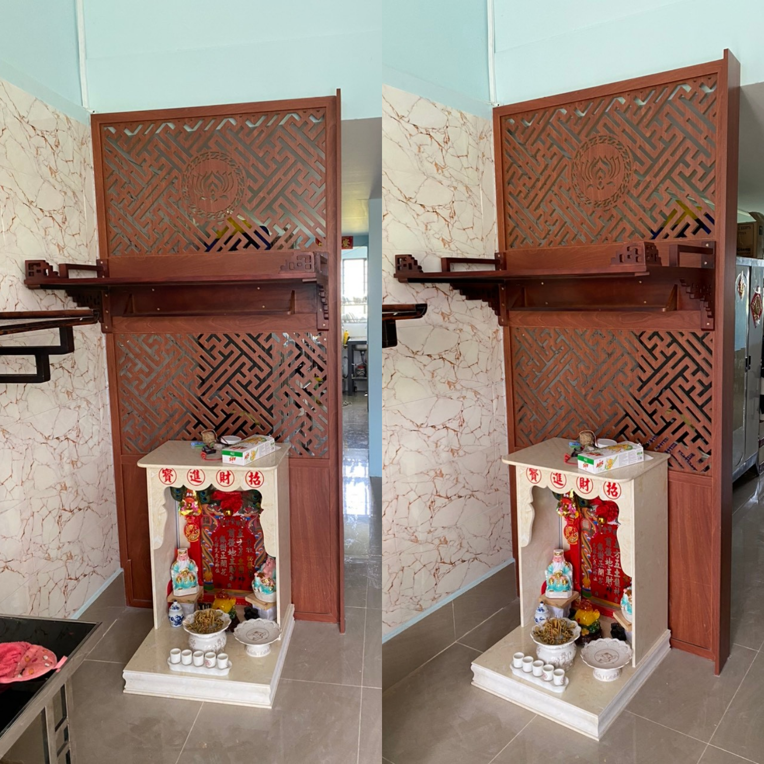 • Thiết kế đa dạng: Vách ngăn bàn thờ treo có thể đi kèm với hoa văn trang trí tinh tế, mang đến vẻ đẹp truyền thống hoặc hiện đại tùy thuộc vào sở thích của gia chủ.