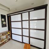Vách cửa lùa mica là dạng vách ngăn kết hợp cửa trượt ngang, trong đó phần khung thường làm bằng gỗ, còn phần bề mặt sử dụng mica cao cấp thay thế cho kính hoặc gỗ đặc.