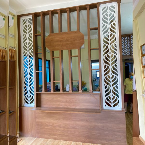 Vách ngăn kết hợp lam gỗ trang trí Spa mẫu NH03